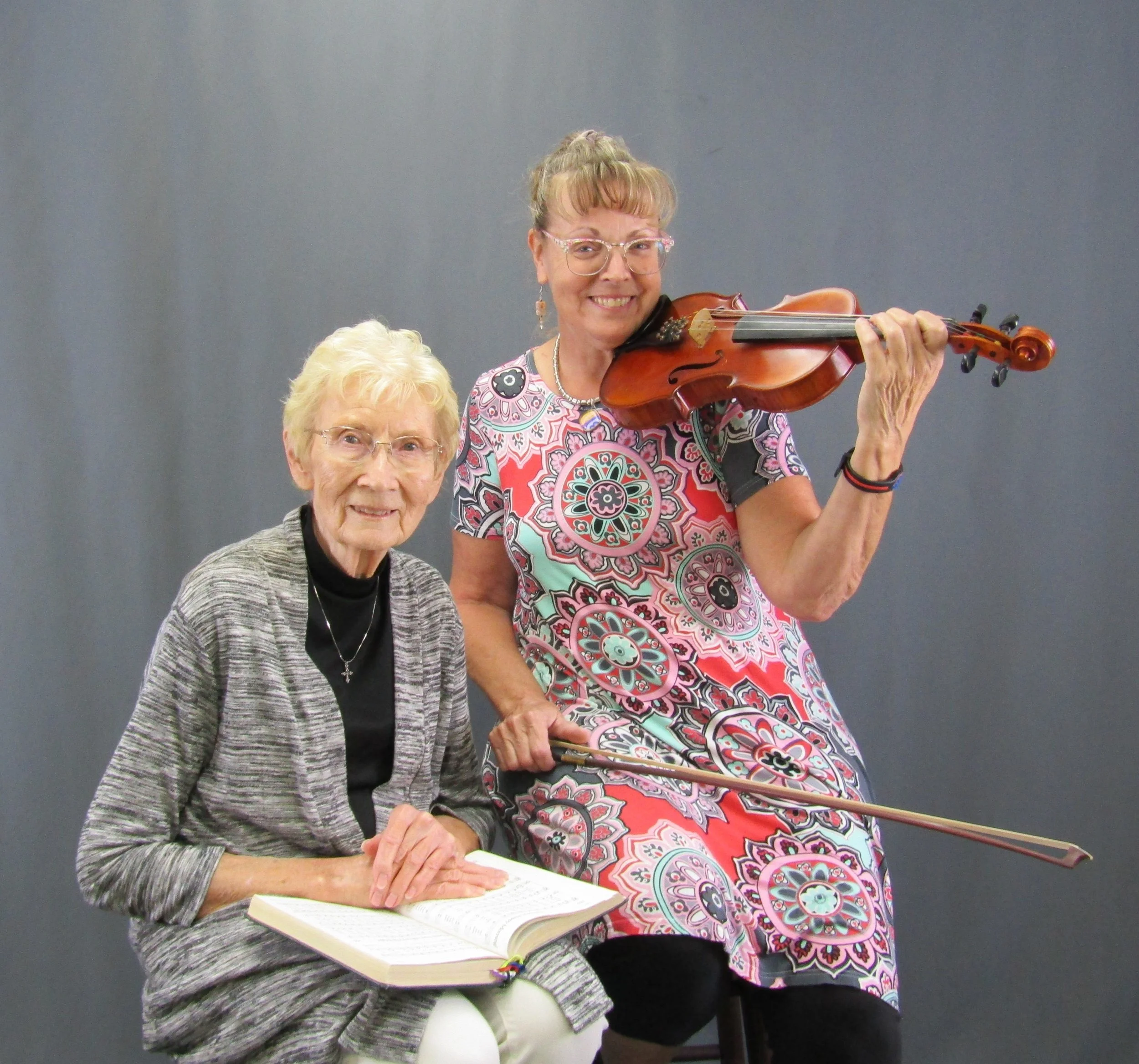 Lorraine, our church organist, and Maria, our violinist, provide the beautiful music for each worship service. Lorraine also directs our choir.